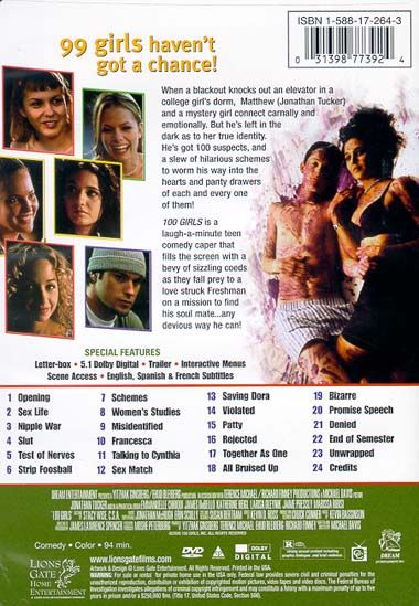 This sexy, teen-comedy is about a freshman, Matthew, at college who meets his dream girl in a dorm elevator during a blackout. He never sees her face, but instantly falls in love. In the morning, the power is restored, but the "dream girl" has vanished. All Matthew knows is that she lives in an all-girls dorm. He sets out on a semester-long journey to find his mystery girl amongst a hundred female suspects. Could it be Wendy? Dora? Arlene? Patty? Cynthia? Or the 95 other girls, any of whom could have been in that elevator with Matthew.