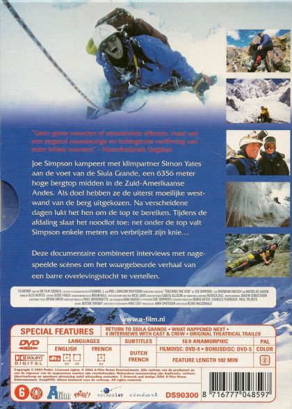 A documentary based on the book of the same name by Joe Simpson about Simpson's and Simon Yates' disastrous and near-fatal attempt to climb 6,344m Siula Grande in the Cordillera Huayhuash in the Peruvian Andes in 1985.