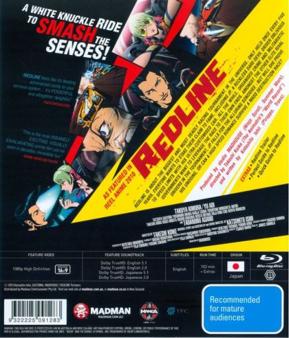 The most dangerous and exciting car race in the universe is held only once every five years. And that's tonight. The competitors are lined up at the starting block. In his vehicle, JP, the most daredevil driver on the circuit, is ready for the green light. Female driver Sonoshee, with whom he is secretly in love, is also on the starting line. She will stop at nothing to get on to that podium. In this race, not only is anything possible, but also anything is allowed. In fact, their adversaries have modified their vehicles to equip them with highly destructive weapons; with such participants, it is hardly surprising that Redline is forbidden by the authorities, who will try anything to halt the proceedings. These speed addicts have to put themselves in mortal danger to achieve their aim: eternal glory for those who finally mount the podium.