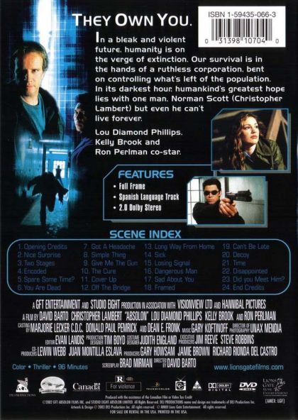 In the near future, a virus has infected everyone on the planet, and Absolon is a drug that everyone must take to stay alive. One corporation controls the drug. Murchison is the leader of this firm. A scientist who was researching the virus is found murdered, and Norman Scott is the policeman who investigates the crime.