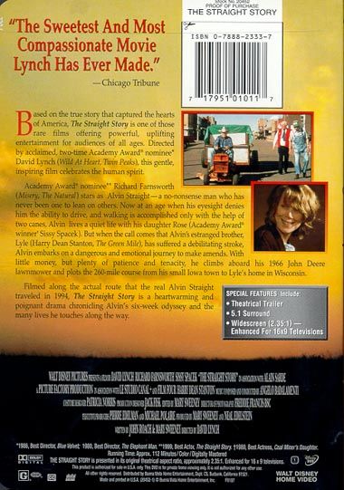 A retired farmer and widower in his 70s, Alvin Straight learns one day that his distant brother Lyle has suffered a stroke and may not recover. Alvin is determined to make things right with Lyle while he still can, but his brother lives in Wisconsin, while Alvin is stuck in Iowa with no car and no driver's license. Then he hits on the idea of making the trip on his old lawnmower, thus beginning a picturesque and at times deeply spiritual odyssey.