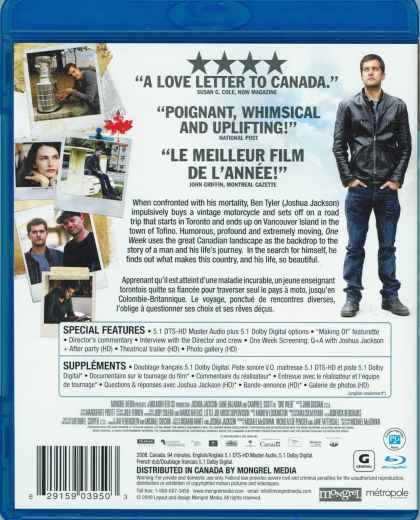 Ben Tyler has been diagnosed with cancer. With a grim chance of survival in the best case scenario even if he immediately begins treatment, he instead decides to take a motorcycle trip from Toronto through the Canadian prairies to British Columbia.