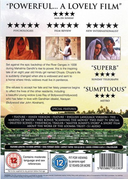 The year is 1938, and Mahatma Gandhi's groundbreaking philosophies are sweeping across India, but 8-year-old Chuyia, newly widowed, must go to live with other outcast widows on an ashram. Her presence transforms the ashram as she befriends two of her compatriots.