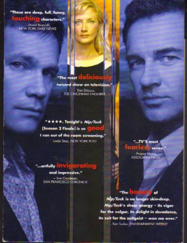 Beauty, the saying goes, is only skin deep. The beauty of Nip/Tuck is that it goes deeper, laying bare the complexities and fragile natures often found in patients seeking cosmetic surgery. Dylan Walsh and Julian McMahon portray hotshot Miami South Beach plastic surgeons who are themselves in full-blown midlife crises as they confront career, family and romance problems. The series' cutting-edge stories range from funny to suspenseful to uncommonly powerful. The surgeries are graphically bold. The sexuality is rampant.
