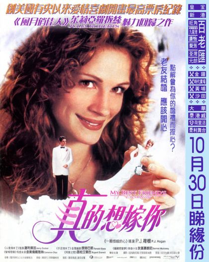 When she receives word that her longtime platonic pal Michael O'Neal is getting married to debutante Kimberly Wallace, food critic Julianne Potter realizes her true feelings for Michael -- and sets out to sabotage the wedding.