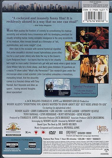 Woody Allen ezúttal (is) kedvenc passziójának, vagyis a szexnek hódol. A hét epizódból álló filmfüzér szerelmi furcsaságokat mutat be, természetesen egyedi, csakis Woody Allen kamera-töltőtollához illő megközelítésben. A választ nyerő kérdések: Használnak-e a szexuális serkentőszerek? Mi a szodómia? Miért jutnak egyes nők olyan nehezen el az orgazmushoz? Homoszexuálisok-e a transzvesztiták? Mi az Ön perverzitása? Megbízhatók-e a szexológusok és a szexklinikák kutatásai? Mi történik ejakuláció közben? Az író-rendező-alkotó ezúttal nem elégedett meg a szimpla főszereppel, hanem négy különböző figura bőrébe bújt: egy gyászos végzetű udvari bolond, egy állhatatos olasz amorozó és egy vakmerő melltartó-pecér mellett hasonlóképpen nagyot domborít egy sötét kételyektől gyötört spermium szerepében.