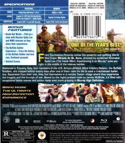 Miracle at St. Anna chronicles the story of four American soldiers who are members of the all-black 92nd "Buffalo Soldier" Division stationed in Tuscany, Italy during World War II.