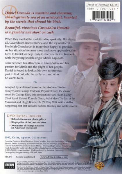 Based on George Eliot's novel about a love triangle gone awry, Daniel Deronda originally aired on television as part of the award-winning Masterpiece Theatre series. The illegitimate son of a wealthy British aristocrat, Daniel harbors a secretive past and a ready supply of cash. When he meets Gwendolyn, a beautiful woman in desperate need of money, things get complicated, as he's already involved in a passionate relationship with a Jewish singer.