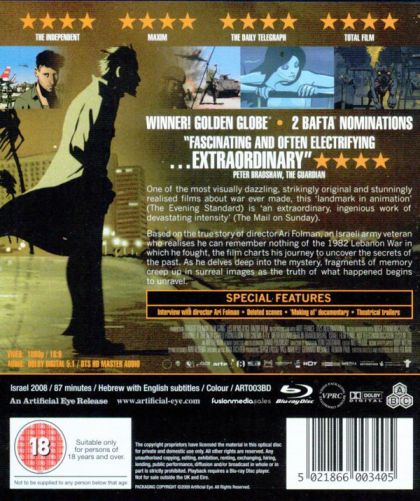 Much awarded animated documentary, in which director and Israeli army veteran Ari Folman interviews friends and former soldiers about their memories of the 1982 Lebanon war and especially the Sabra and Shatila massacre in Beirut. The usage on animation enabled Folman to illustrate their personal memories and dreams.