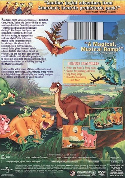 As the Great Day of the Flyers nears, the Great Valley's flying youngsters are eager to participate in the annual exhibition to show off their skills. Everyone, that is, except free-spirited pterodactyl Petrie, whose individualism causes problems when it comes to staying in formation. Enter his dinosaur pals Littlefoot, Cera, Spike and Ducky, who encourage Petrie to embrace his uniqueness.