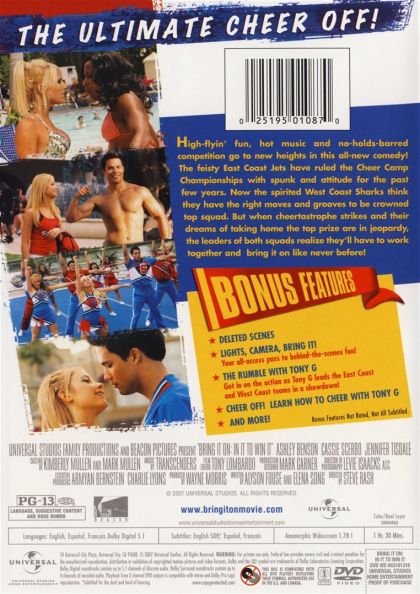 Fourth 'Bring It On' movie is set at a cheerleader camp in Florida with a 'West Side Story' musical feel has the female captain of the West Side Sharks meeting and romancing a male member of the East Coast Jets amid their different team rivalries.
