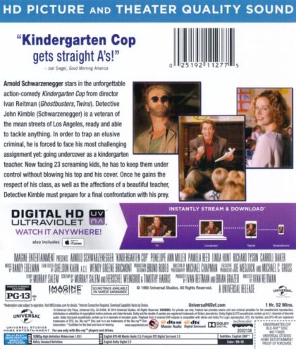 Hard-edged cop John Kimble gets more than he bargained for when he goes undercover as a kindergarten teacher to get the goods on a brutal drug lord while at the same time protecting the man's young son. Pitted against a class of boisterous moppets whose antics try his patience and test his mettle, Kimble may have met his match … in more ways than one.