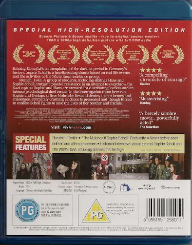 True story of Germany's most famous anti-Nazi heroine brought to thrilling, dramatic life. Sophie Scholl stars Julia Jentsch in a luminous performance as the fearless activist of the underground student resistance group, The White Rose. Armed with long-buried historical records of her incarceration, director Marc Rothemund expertly re-creates the last six days of Sophie Scholl's life.
