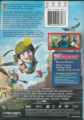 Set in 1944, Valiant is a woodland pigeon who wants to become a great hero someday. When he hears they are hiring recruits for the Royal Homing Pigeon Service, he immediately sets out for London. On the way, he meets a smelly but friendly pigeon named Bugsy, who joins him, mainly to get away from clients he cheated in a game of find-the pebble, and helps him sign up for the war.