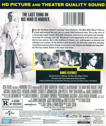 A tale of passion, crime and punishment set in the summer of 1949. Ed Crane, a barber in a small California town, is dissatisfied with his life, but his wife Doris' infidelity presents him with a chance to change it.
