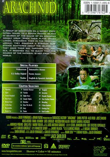 Arachnid is a 2001 film directed by Jack Sholder. In this movie, giant killer spiders menace survivors of a plane crash.