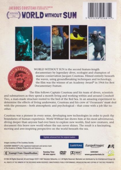 Fascinating underwater documentary filmed with hand-held cameras by frogmen and mostly filmed in deep-water seas from within a special designed batiscaff, by the Cousteau family of sea explorers.