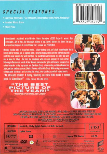 Following the tragic death of her teenage son, Manuela travels from Madrid to Barcelona in an attempt to contact the long-estranged father the boy never knew. She reunites with an old friend, an outspoken transgender sex worker, and befriends a troubled actress and a pregnant, HIV-positive nun.