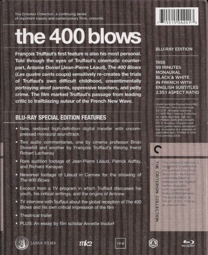 For young Parisian boy Antoine Doinel, life is one difficult situation after another. Surrounded by inconsiderate adults, including his neglectful parents, Antoine spends his days with his best friend, Rene, trying to plan for a better life. When one of their schemes goes awry, Antoine ends up in trouble with the law, leading to even more conflicts with unsympathetic authority figures.
