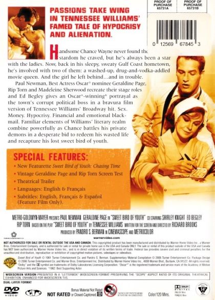 Gigolo and drifter, Chance Wayne, returns to his home town as the accompaniment of a faded movie star, Alexandra Del Lago, whom he hopes to use to help him break into the movies. Chance runs into trouble when he finds his ex-girlfriend, the daughter of the local politician Tom 'Boss' Finley, who more or less forced him to leave his daughter and the town many years ago.