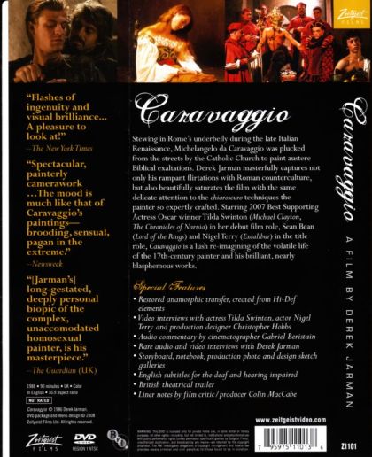 A nagy itáliai festő, Caravaggio életrajzírói szerint a festő azt állította, olyan pontosan másolta modelljeit, hogy még egy ecsetvonást sem tett soha, amit a sajátjának nevezhetett volna. Ezt használta ki Derek Jarman, amikor filmje cselekményének szerkezetét a festmények alapján építette fel. Jarman kombinálja a tudományost, a festőit és a látnokit. Bejárja Caravaggio világát, fantáziát sző a képeken szereplő emberekről, bennük találja meg Caravaggio viharos magánéletének szereplőit és drámáit.