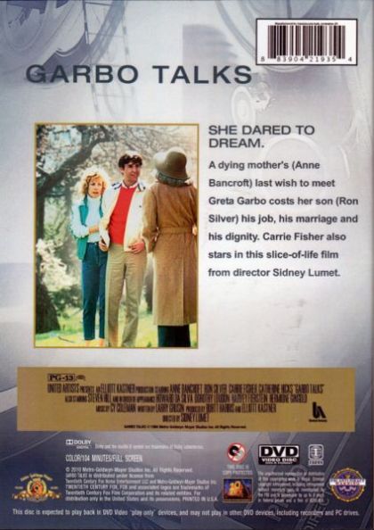 A New York accountant (Ron Silver) sets out to grant his dying mother's last wish--to meet film star Greta Garbo. Sidney Lumet's bittersweet 1984 comedy also stars Anne Bancroft, Catherine Hicks, Carrie Fisher, Harvey Fierstein, Howard Da Silva, Steven Hill, Hermione Gingold, Dorothy Loudon and Betty Comden.