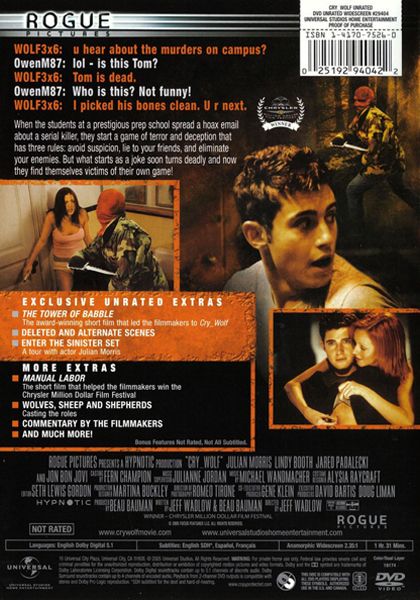 After a local woman is murdered, a group of teenage liars create a warning e-mail of a serial killer named “The Wolf”, coming on the next full moon. The teens describe each death method The Wolf uses, but when the described victims actually do start turning up dead, suddenly no one knows where the lies end and the truth begins.