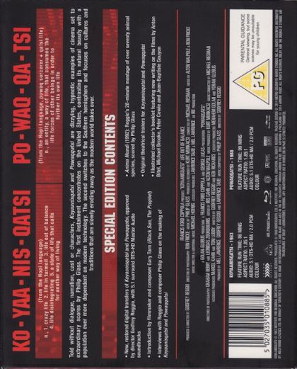 Takes us to locations all around the US and shows us the heavy toll that modern technology is having on humans and the earth. The visual tone poem contains neither dialogue nor a vocalized narration: its tone is set by the juxtaposition of images and the exceptional music by Philip Glass.