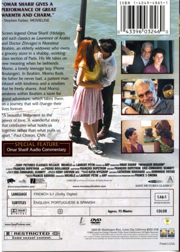 Monsieur Ibrahim is a story about a young Jewish boy in Paris who meets an old Muslim Turkish grocery store owner. The film touches the themes of friendship and love as the old man is a father figure to the boy as he teaches him of the Koran. The film is based on a book of the popular book by the French author Eric-Emmanuel Schmitt.