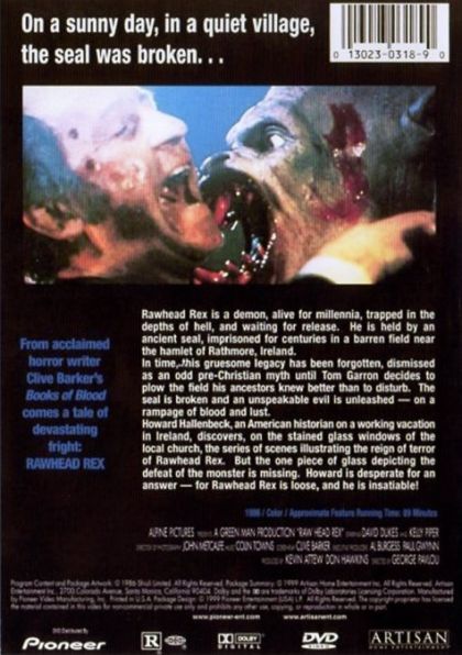 Ireland will never be the same after Rawhead Rex, a particularly nasty demon, is released from his underground prison by an unwitting farmer. The film follows Rex's cross country rampage, while a man struggles to stop it.