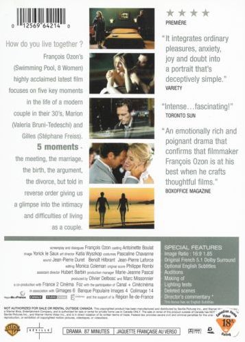 Egy pár életének 5 jelenete, avagy hogyan élhet a mai világban egy férfi és egy nő, s mindez öt különböző változatban. Ozon termékeny tehetségével. Fassbinderhez hasonlítható nagyságú rendező, csak francia stílussal megáldva. Férfi és nő egymásba szeretnek, összeházasodnak, gyermekük születik, majd kapcsolatuk hirtelen megromlik. Problémáikra végül nem találnak más kiutat, elválnak.