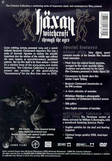 Haxan is a study about how superstition and the misunderstanding of diseases and mental illness could lead to the hysteria of the witch-hunts. The film was made as a documentary but contains dramatized sequences that are comparable to horror films.