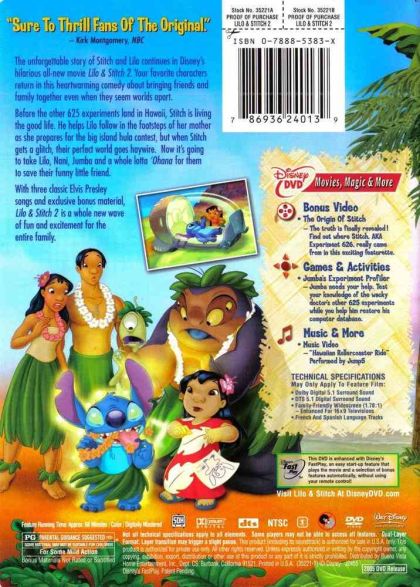 Now, we find the rowdy extraterrestrial getting used to life with his new ʻohana. However, a malfunction in the ultimate creation of Dr. Jumba soon emerges, which reinstates his destructive programming and threatens to both ruin his friendship with Lilo and to short him out for good!
