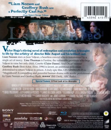 In 19th century France, Jean Valjean, a man imprisoned for stealing bread, must flee a relentless policeman named Javert. The pursuit consumes both men's lives, and soon Valjean finds himself in the midst of the student revolutions in France.