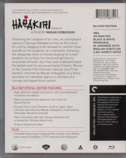 "A Harakiri szamurájhőse, Hanshiro bosszút áll egy klán vezetőin, mert vejét kényszerítették, hogy bambuszkéssel harakirit hajtson végre, elrettentésül azok számára, akik, mint ő, nyomorúságukban már a kardjukat is eladták, és abban a reményben jönnek a klánhoz, hogy annak vezetői - harakirire is kész szamuráj-büszkeségük láttán - alkalmazzák őket..."