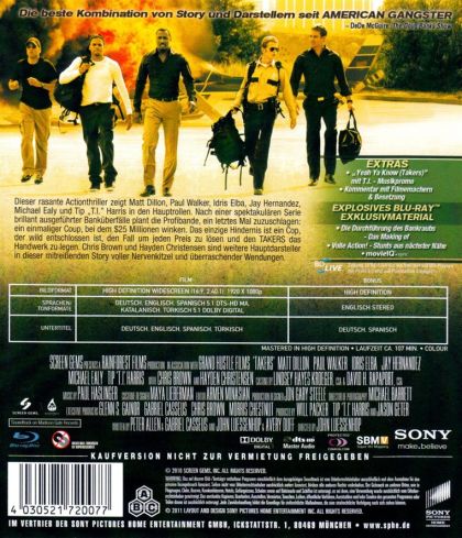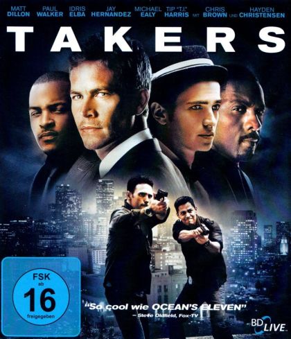 A seasoned team of bank robbers, including Gordon Jennings, John Rahway, A.J., and brothers Jake and Jesse Attica successfully complete their latest heist and lead a life of luxury while planning their next job. When Ghost, a former member of their team, is released from prison he convinces the group to strike an armored car carrying $20 million. As the "Takers" carefully plot out their strategy and draw nearer to exacting the grand heist, a reckless police officer inches closer to apprehending the criminals.