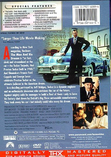 Based on a true story. Shortly after World War II, Preston Tucker is a dynamic engineer and an enthusiastic showman who envisions the car of the future. Against mighty odds he manages to build a fleet of them - only to have his factory shut down by Detroit's Big Three automobile manufacturers. They took away his car - but nobody could take away his dream.