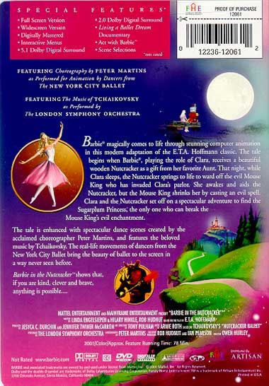 "Barbie" stars as Clara in this animated retelling of the classic Christmas ballet, complete with Tchaikovsky soundtrack and ballet choreography.
