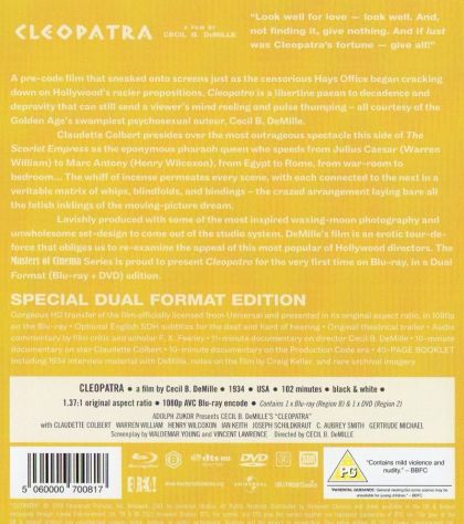 The queen of Egypt (Claudette Colbert) barges the Nile and flirts with Mark Antony (Henry Wilcoxon) and Julius Caesar (Warren William).