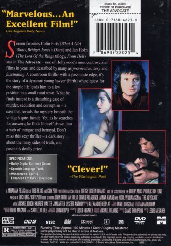 Bizarre black comedy about 15th-century Paris lawyer Richard Courtois (Firth) who decides to ply his trade in the country, only to find things stranger than he can imagine. His first case turns out to be defending a pig that's accused of murdering a child. And the pig is owned by beautiful gypsy Samira (Annabi), so the idealistic lawyer can fall in love (or lust). There's religion and superstition, there's power struggles, there's ignorance versus knowledge--things sound very modern indeed.