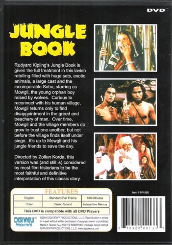 Színpompás dzsungel-szimfónia egzotikus helyszínekkel, óriási állatsereglettel, izgalmas kalandokkal. Rudyard Kipling nyomán remek film készült a farkasbarlangban talált emberkölyökről. Maugli, a "meztelen béka" és nevelőszülei, Farkas apó, Farkas anyó, valamint barátai: Balu, az álmos öreg medve, aki a Dzsungel Törvényére tanítgatja, Bagira, a fekete párduc, a fekete suhanó árnyék, a dzsungel mélyének félelmetes lakói: Sir Khán, a Nagy, a sziszegő Ká, mind népszerűek és ismertek az egész világon, úgy a gyermekek körében, mint a felnőttek világában. A Dzsungel Törvénye, amelynek egyetlen parancsa sem ok nélkül való, minden vadállatnak megtiltja, hogy embert egyék.