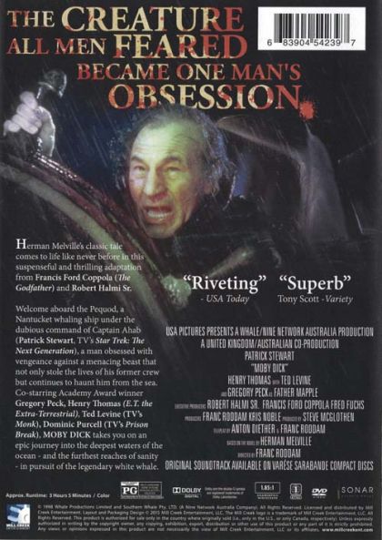 Herman Melville's towering epic of New England seafaring life pits grizzled, obsessive Captain Ahab (Golden Globe nominee Patrick Stewart, "X-Men") against the infamous great white whale, Moby Dick. Co-starring Henry Thomas ("E.T. The Extra-Terrestrial") as Ishmael and the legendary Gregory Peck, who played Ahab in the 1956 version directed by John Huston.