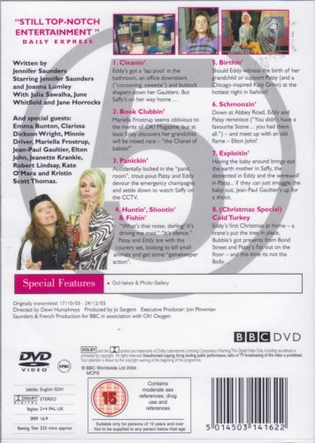In this satirical British sitcom, which became a cult hit on American cable, a grotesquely self-centered fashion victim chain-smokes, swills champagne, abuses drugs, munches caviar, terrorizes her daughter, and tries in vain to mingle with the beautiful people -- all in the company of her sleek, slutty, boozed-up best friend.