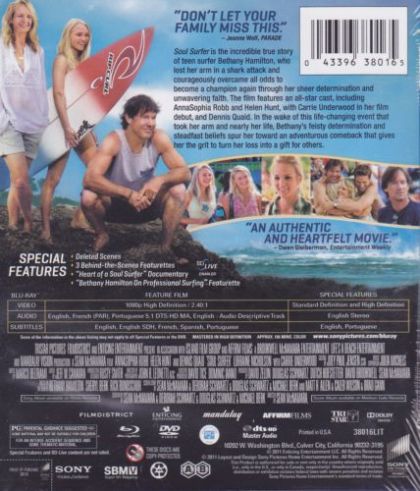 The true story of teen surfer Bethany Hamilton, who lost her arm in a shark attack and courageously overcame all odds to become a champion again, through her sheer determination and unwavering faith.