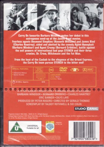Carry On favourite Barbara Windsor makes her debut in this outrageous send-up of the James Bond movies. Fearless agent Desmond Simpkins and James Bind, aided and abetted by the comely Agent Honeybutt and Agent Crump, battle against the evil powers of international bad guys STENCH and their three cronies.