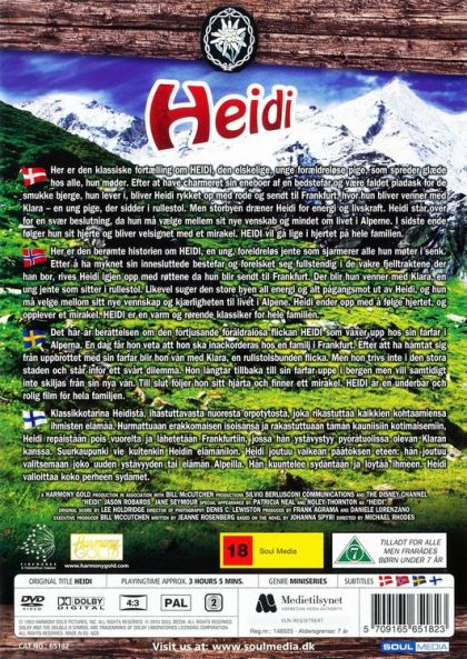 After charming her reclusive grandfather and falling in love with the beautiful mountain he calls home, Heidi is uprooted and sent to Frankfurt where she befriends Klara, a young girl confined to a wheelchair.