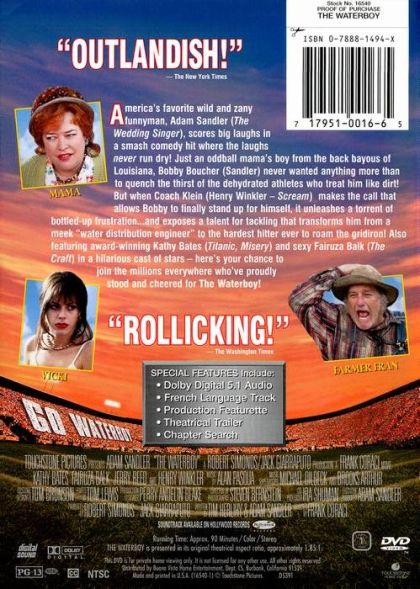 Bobby Boucher is a water boy for a struggling college football team. The coach discovers Boucher's hidden rage makes him a tackling machine whose bone-crushing power might vault his team into the playoffs.