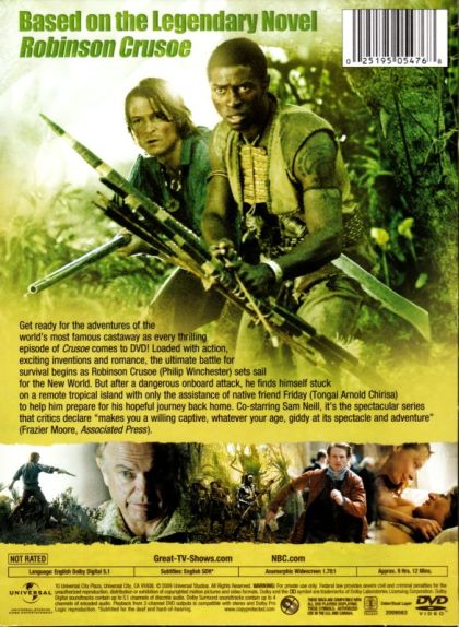 Based on the classic Daniel Defoe novel, Crusoe tells the story of young Robinson Crusoe as he leaves the love of his life to set out on an adventure. When the trip takes a turn for the worst, Crusoe ends up shipwrecked on a tropical island, detached from the only life he's known. Stranded, his friendship with Friday and memories of his wife keep him sane as he battles enemies, braves the elements, and learns how to survive on the island for over 28 years.