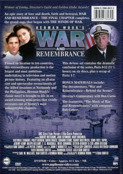 The saga of the Henry family, begun in "The Winds of War" continues as America is attacked by Japan and enters World War II. For Victor Henry, an upwardly mobile naval career sets him in command of a cruiser with sights on selection for the Admiralty. At the same time, however, Victor must struggle with a failing marriage as well as a love affair with the daughter of a prominent British radio news reporter. Victor's son Byron has equal success as a submarine officer, eventually selected to command his own ship, yet all the while must deal with the separation of his wife and son who are held in German custody as enemy alien Jews. Through other such characters as Professor Aaron Jastrow, Naval Pilot Warren Henry, and the noble German General Armin von Roon, "War and Remembrance" unfolds into an all encompassing and fascinating story of the Second World War.