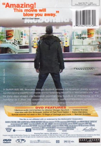 Morgan Spurlock subjects himself to a diet based only on McDonald's fast food three times a day for thirty days without exercising to try to prove why so many Americans are fat or obese. He submits himself to a complete check-up by three doctors, comparing his weight along the way, resulting in a scary conclusion.
